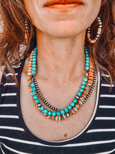 3MM Turquoise Choker & Navajo Pearls With Seed Beads