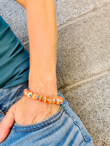 10mm Orange Spiny Oyster Necklace with Turquoise Nuggets