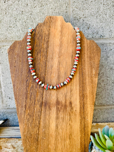 8MM Navajo Pearl Necklace With Spiny Oyster & Turquoise