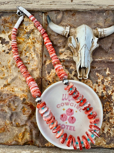 Gigantic Red Spiny Oyster Necklace With Turquoise