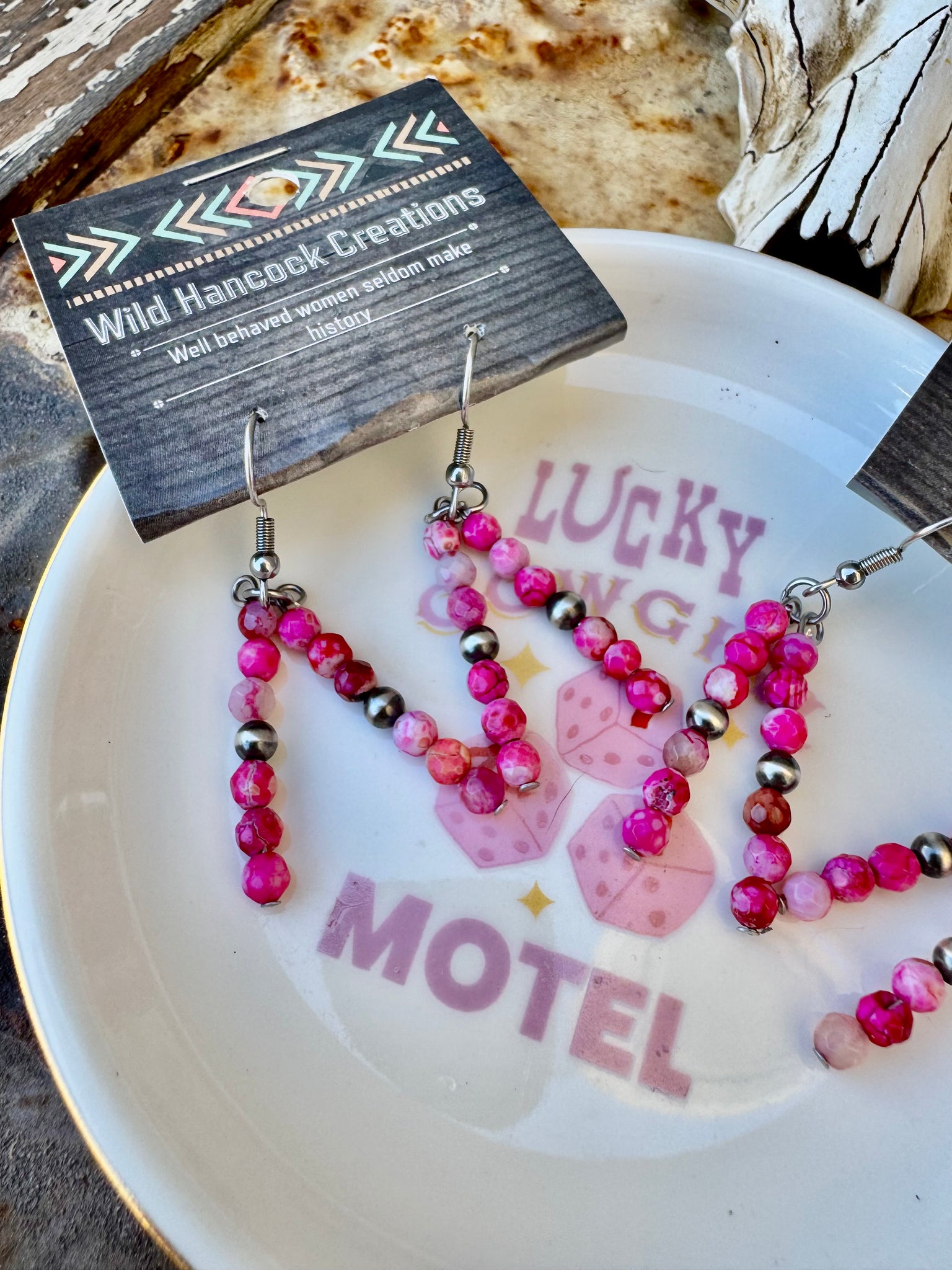 Add a playful pop of pink to your style with these Double Pink Bar Earrings! I added Navajo pearls to keep the western vibe going!