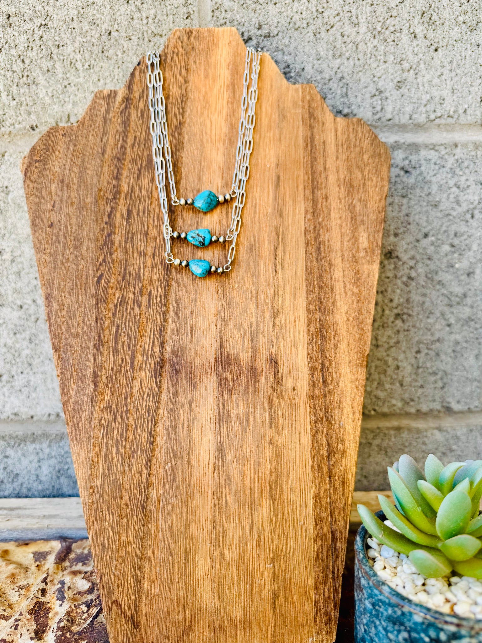 Genuine Turquoise Bar Choker With 4MM Navajo Pearls