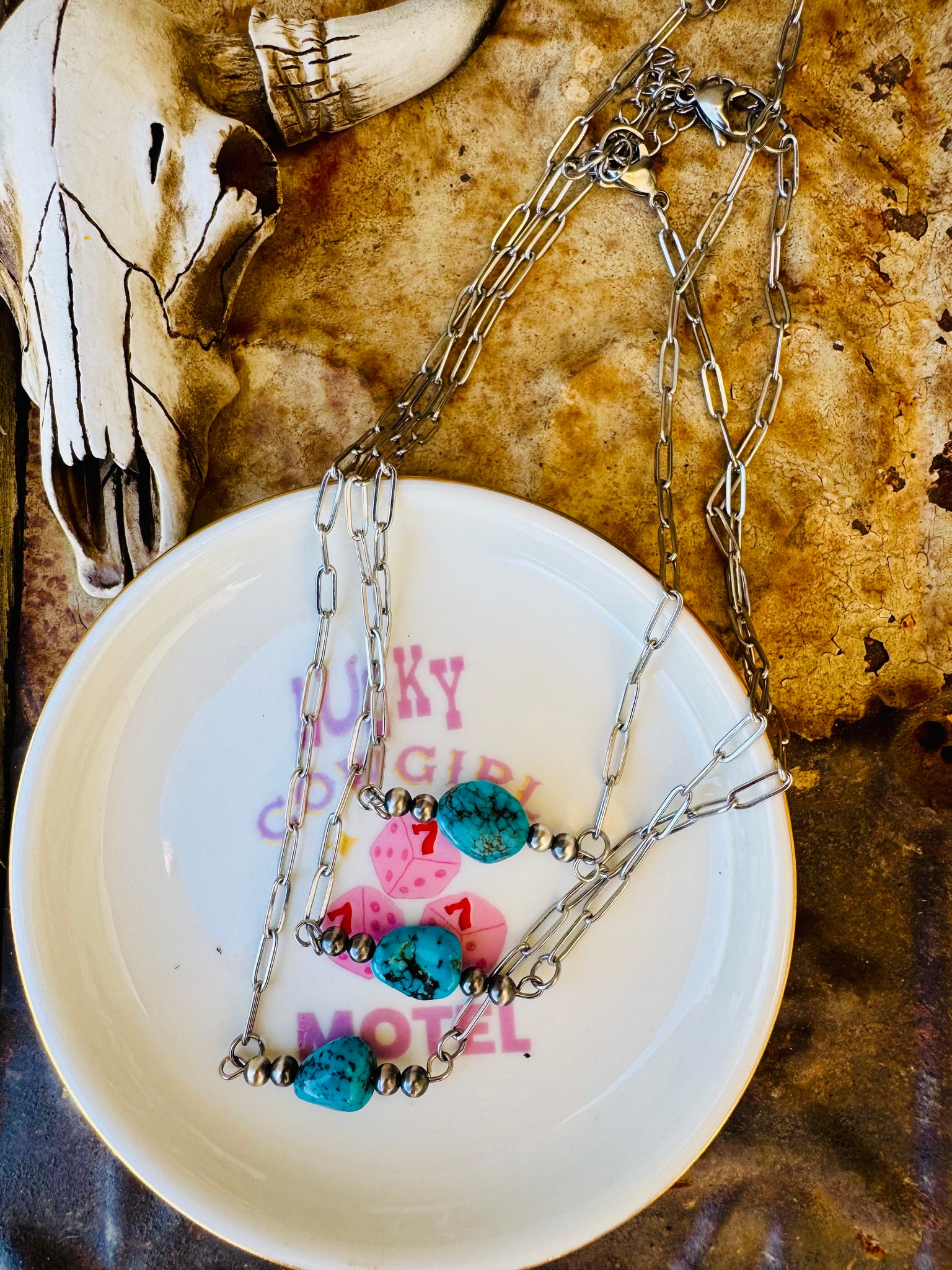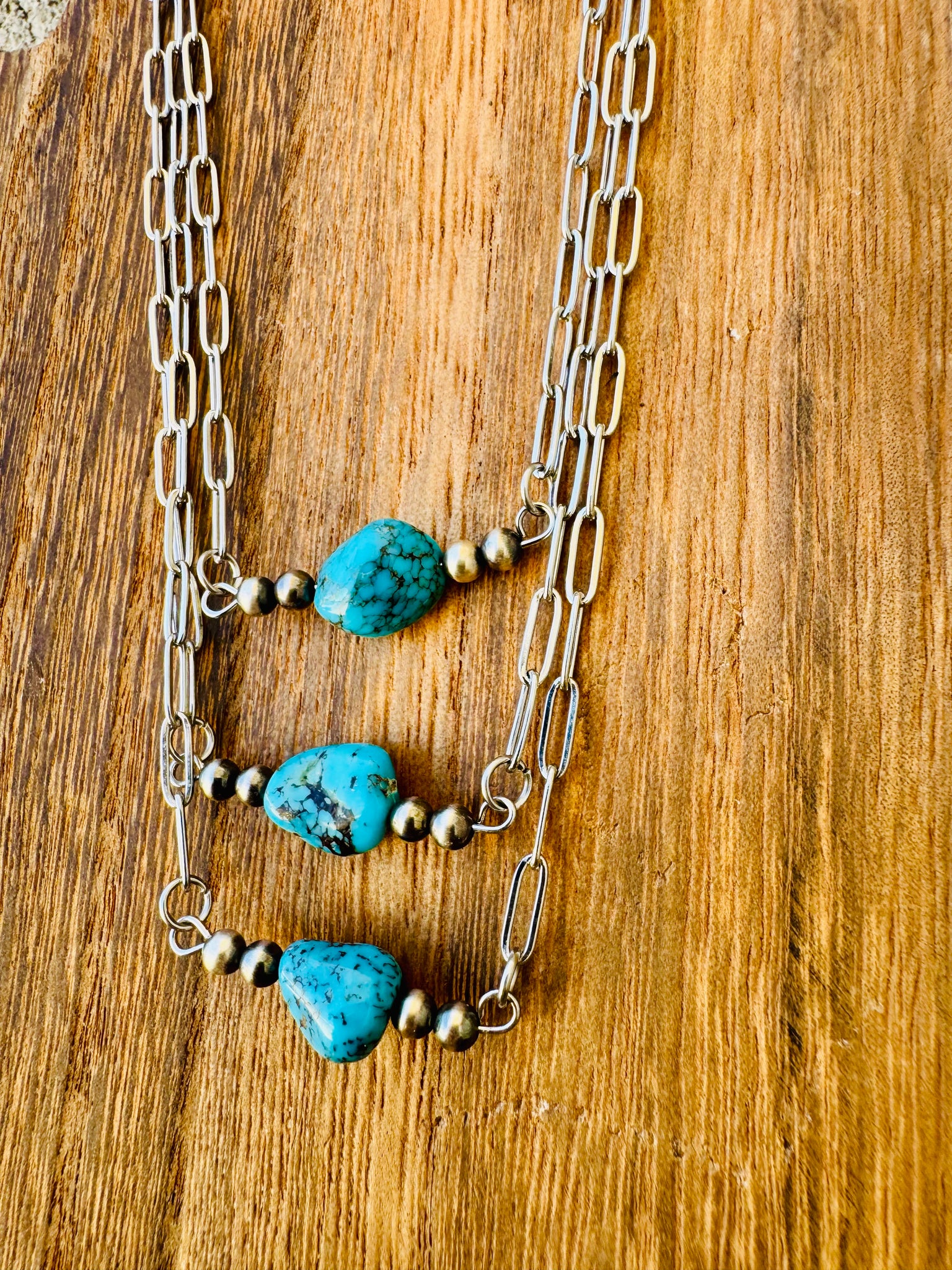These turquoise nuggets are vibrant blue and have great matrix in each stone! This is a great southwestern choker to add to your neck stack!