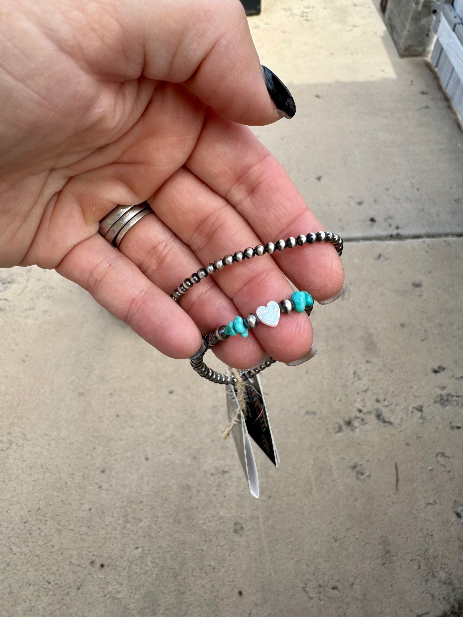 Whether you choose the classic plain style or the white Opal heart and turquoise, they’re perfect for mixing, matching, and stacking and showing off your personalized wrist stacks!