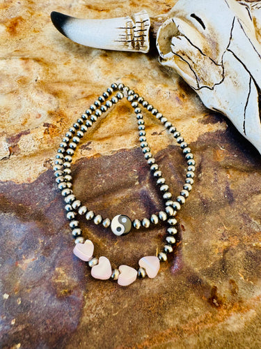 Navajo Pearl Bracelet With Hearts Or Yin Yang