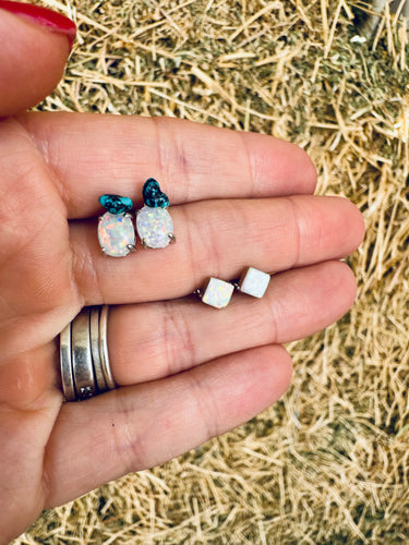 Genuine Kingman Turquoise Studs Or Orange Spiny Oyster Stud Earrings