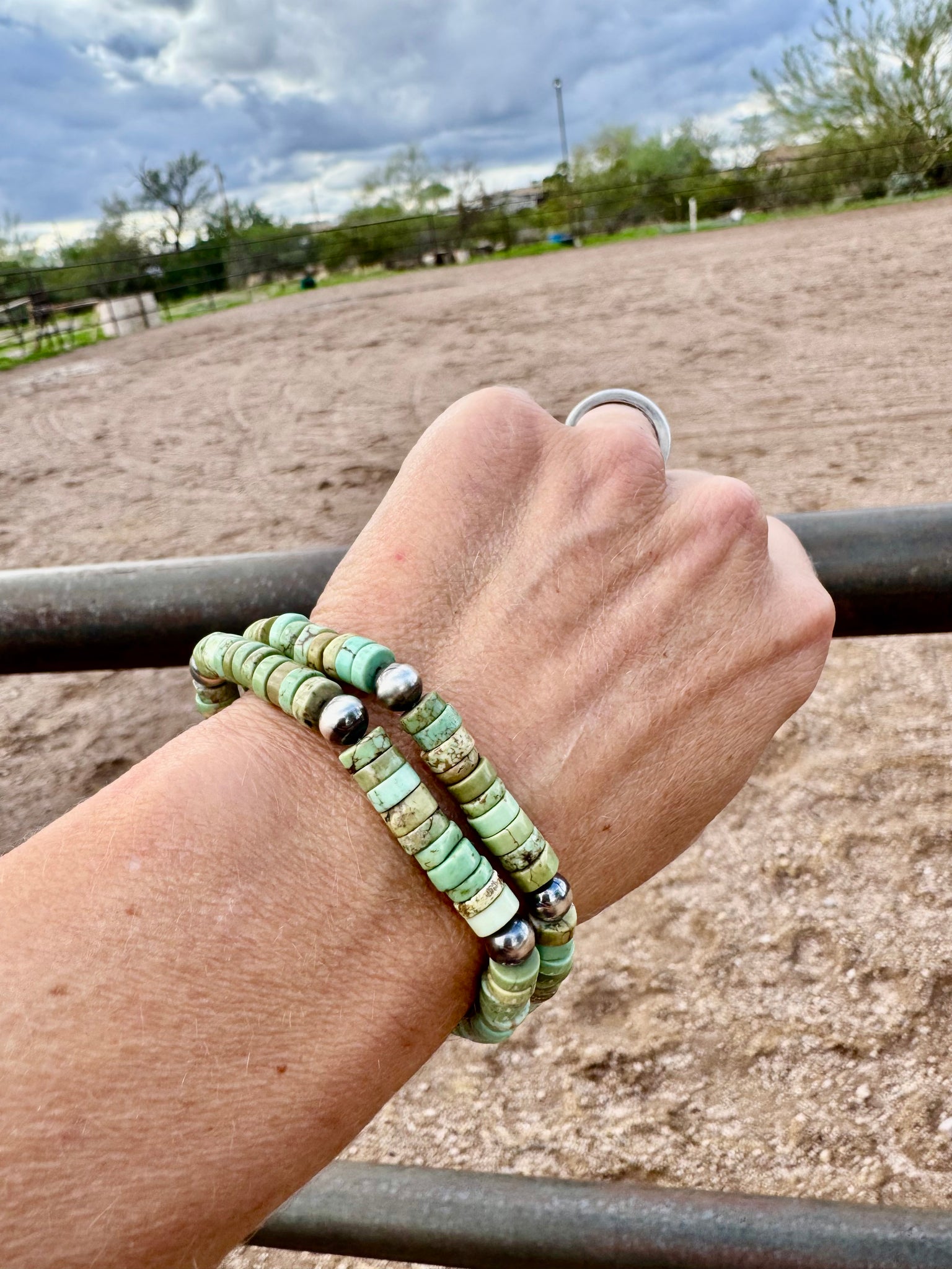 Genuine rondelle green turquoise stretchy bracelet! Fun and easy to stack with others :)!