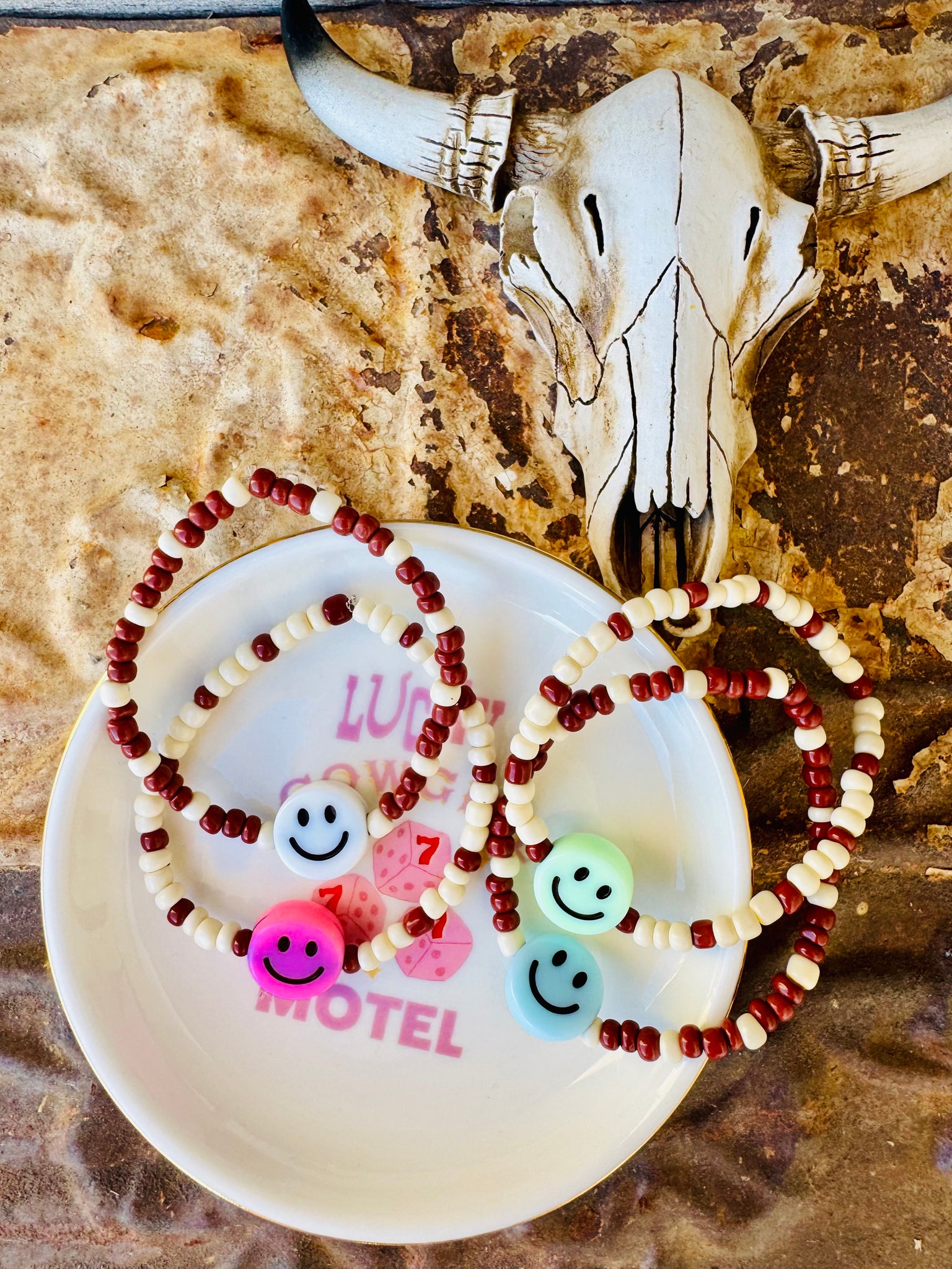 Bring back 90s vibes with the OG Big Smiley Bracelet! Featuring neutral color size 6 seed beads and a big smiley center bead, this stretchy bracelet adds a playful pop to any outfit. Perfect for layering or wearing solo, it’s an easy way to keep your style fun and carefree all day long.