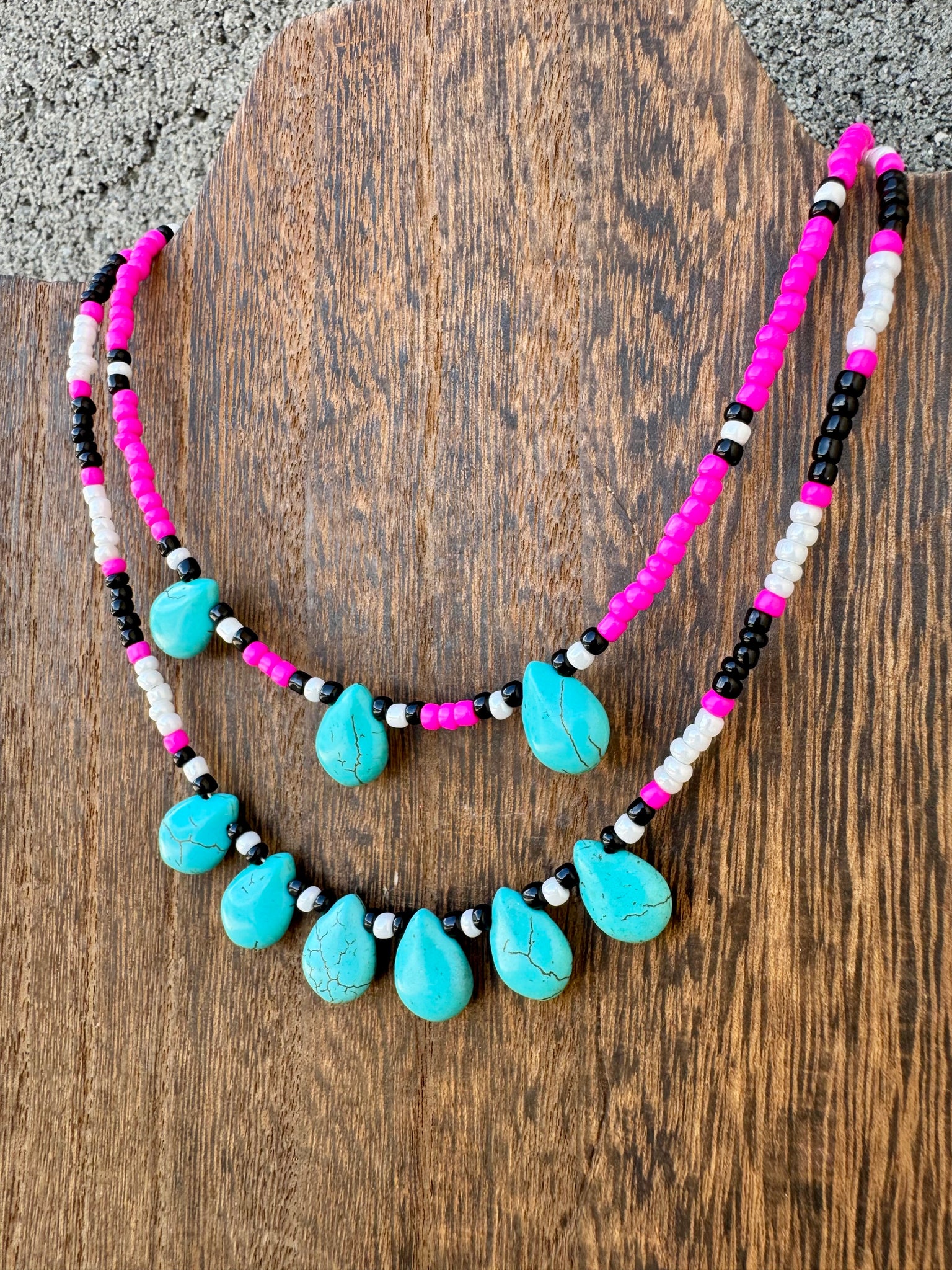 Add a splash of color Turquoise Teardrop Choker to your look! Featuring bright magnesite teardrop beads, it’s the perfect statement piece to brighten your outfit while keeping your style fresh and fun.