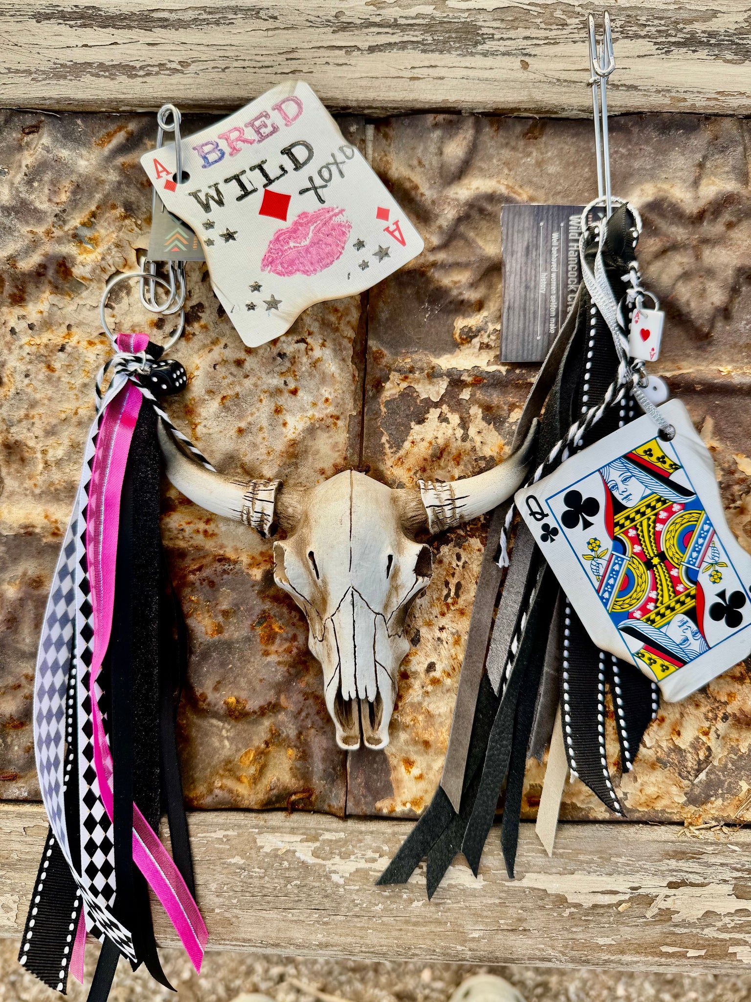 Add some western grunge vibes to your truck keys, purse or off your rear view mirror! Theses are super fun with lots of different textures- ribbons, leather annnd old disassembled team & calf ropes, for a bit of extra-ness!!:)