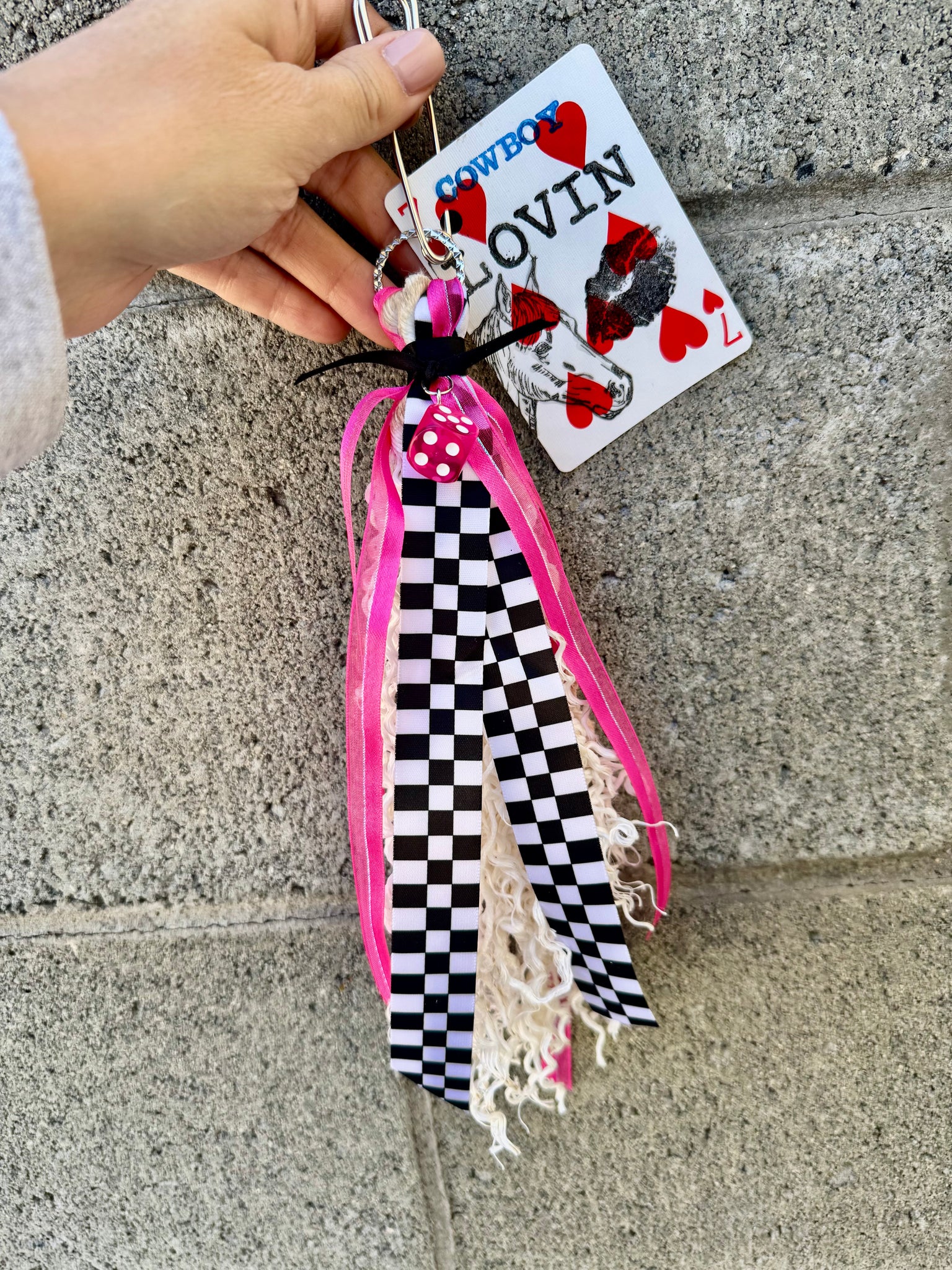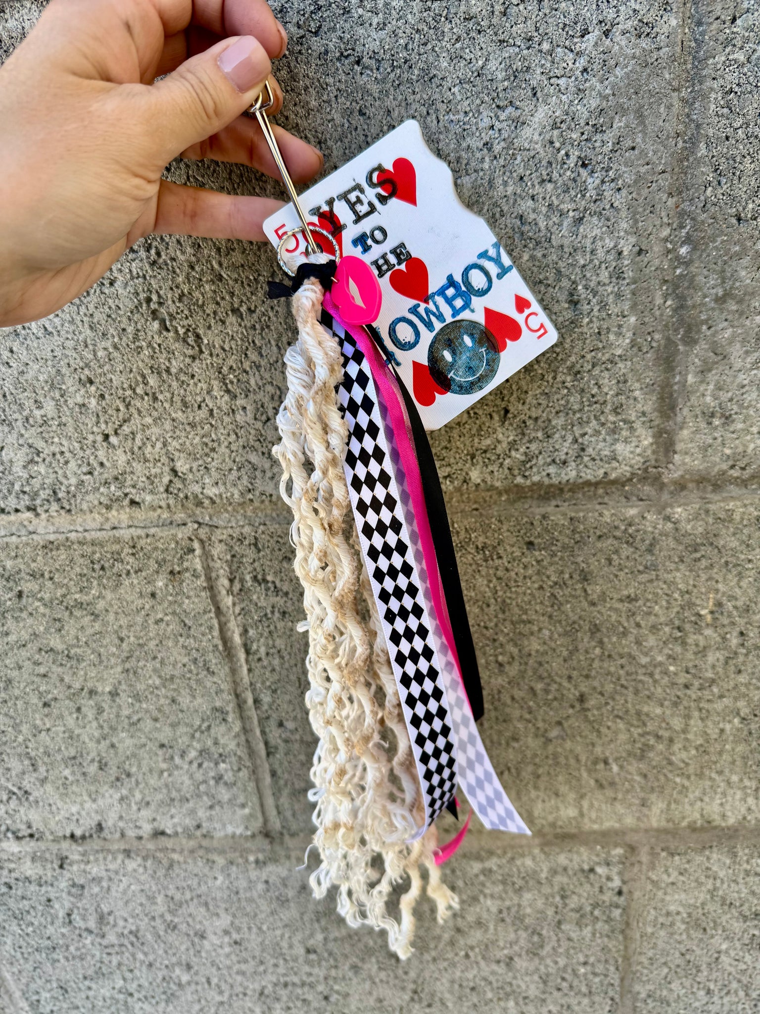 Add some western grunge vibes to your truck keys, purse or off your rear view mirror! Theses are super fun with lots of different textures- ribbons, leather annnd old disassembled team & calf ropes, for a bit of extra-ness!!:)