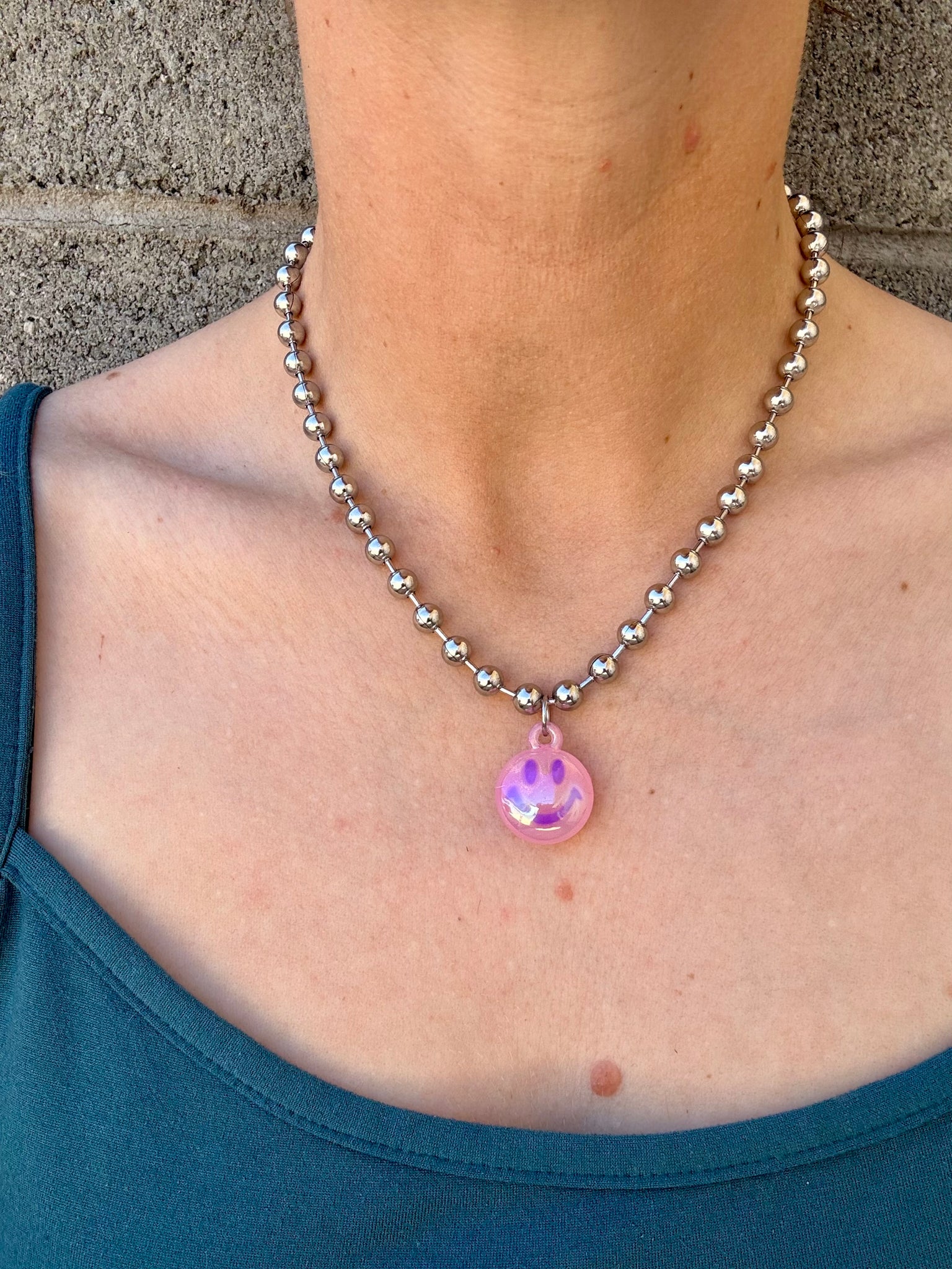 This bubble smiley necklace is a must have for all your layering needs! Punk, Rock or Western... This chunky necklace has all your bases covered!