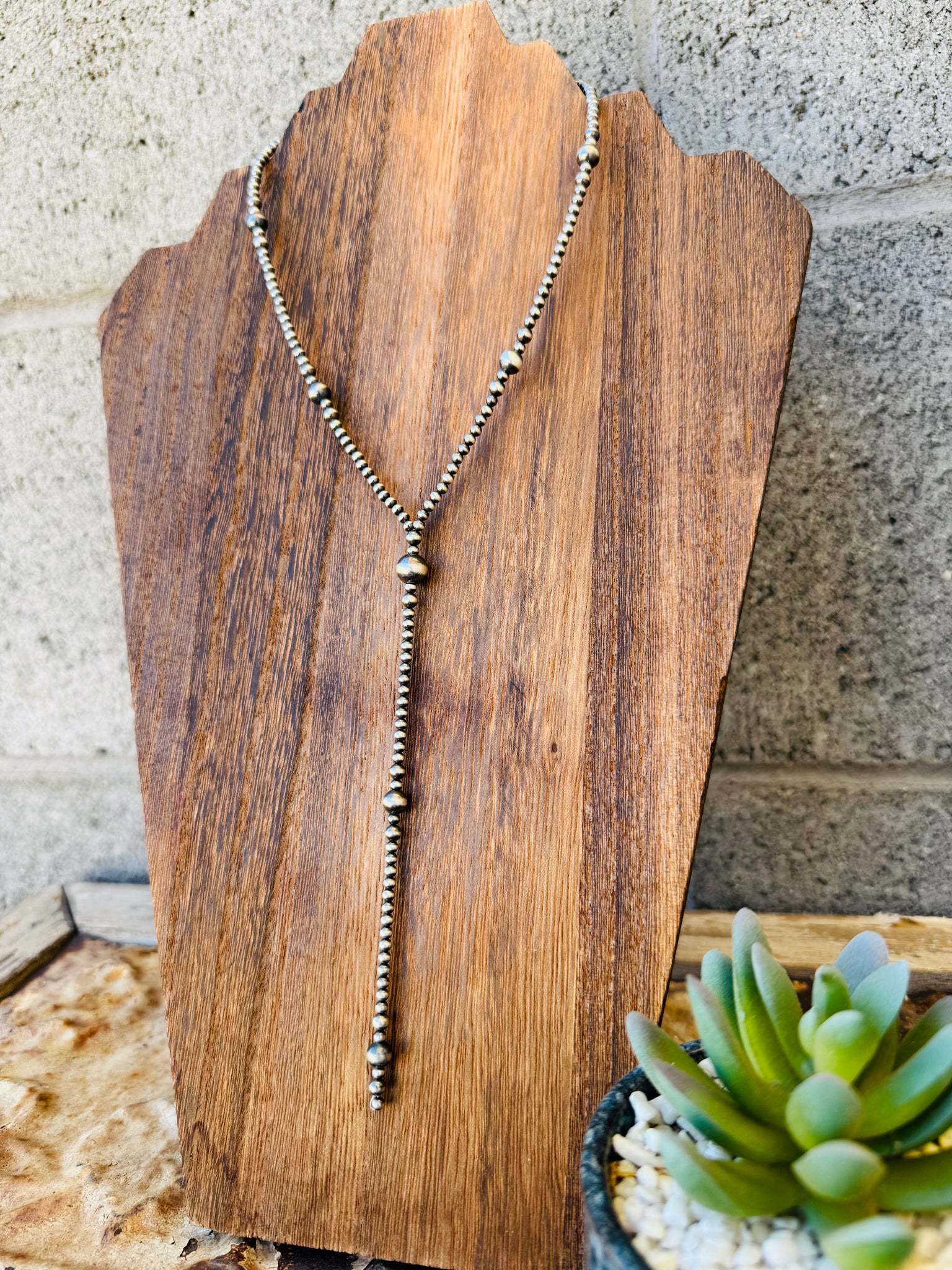 Lariat but Navajo Pearl style! Fun to wear solo or stack with other pieces in your collection!